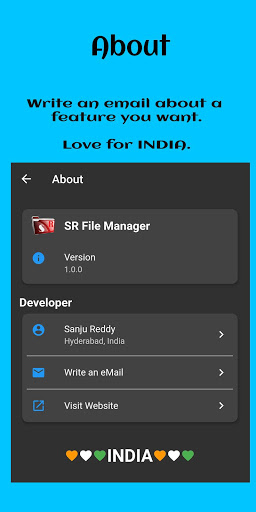 SR File Manager to darmowe i bezpieczne narzędzie do szybszego wyszukiwania plików i łatwo zarządzać. SR Menedżer plików rozpoznaje wiele formatów plików, takich jak muzyka, filmy, obrazy, dokumenty, pliki zip / rar i dają niesamowite interfejs użytkownika, aby je wyświetlać.