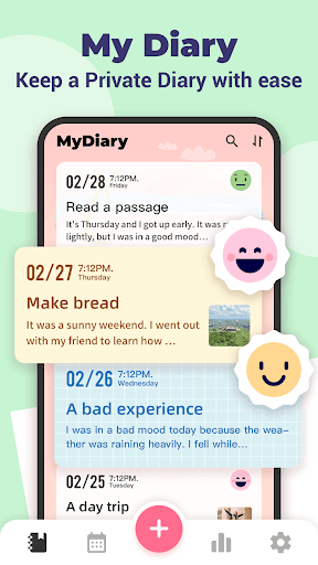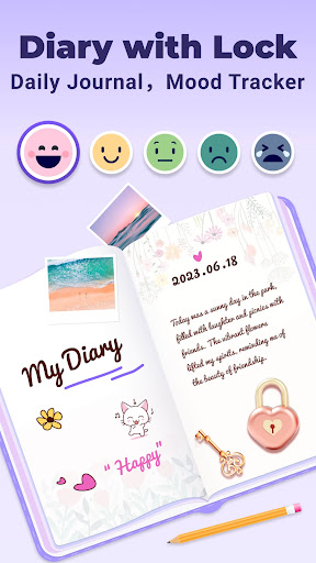 My Diary - the free diary journal app with lock, your private thoughts will remain secure and confidential. You can use it to record daily diary, secret thoughts, journeys, moods, and any private moments. With this journal app, you can record daily thoughts and track daily mood changes. 🛡️🔐