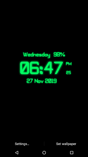 DATA DIGI CLOCK Data, godzina (12 godzin i 24 godziny), bateria w procentach na ekranie telefonu z cyfrowym stylem z prostym formatem.Czas pokazuj również forman 12 HR lub 24 godziny zgodnie z twoim wyborem, dodajemy również tak dużo formanu daty, jak chcesz wybrać, jeśli tak jest, potrzebujesz jakiegokolwiek wskaźnika, takiego jak secons, bateria, data, więc po prostu wybierz ukryj i nie pokaż na ekranie.Możesz wybrać kolor zegara z kolorowym pikerem i dwoma stylami zegara, po prostu wybierz styl zegara.