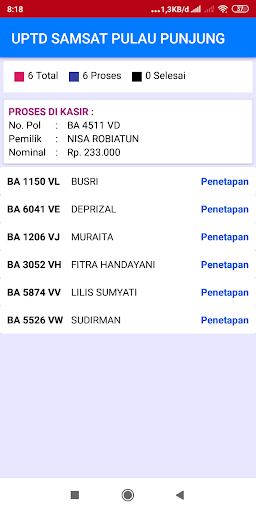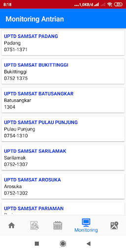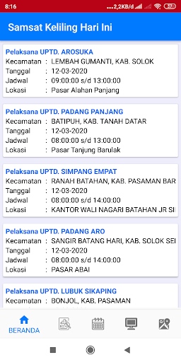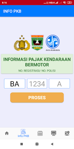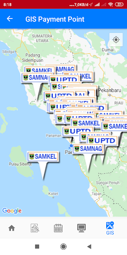 Aplikacje usług publicznych zapewniające informacje na temat podatku od pojazdów silnikowych, mobilnego Samsatu, monitorowania statusu transakcji w uptd samsat oraz systemu informacji o punktach płatniczych dla usług związanych z podatkiem od pojazdów mechanicznych w prowincji Sumatra Zachodnia.