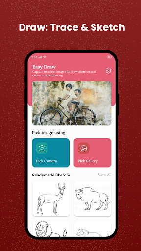 Trace & amp;Szkic - Aplikacja LATE Easy Trace to Sketch to niewiarygodne narzędzie do rysowania kochanka, takiego jak Childern i Artist.Zapewnia wydajną i przyjazną dla użytkownika platformę do tworzenia rysunku i szkicowania.Dzięki lekcjom rysowania krok po kroku i możliwości śledzenia wybranych obrazów za pomocą papieru śledzenia pod kamerą, jest to doskonały zasób do nauki i ćwiczenia sztuki śledzenia.Transformujące szkice w sztukę jest łatwe za pomocą rysunku śledzenia: narysuj łatwą aplikację do śledzenia obrazów, czy to łatwy rysunek konia, łatwe rysunki kota, urocze rysunki, proste rysunek, rysunek kreskówki, rysunek jednorożca, chłodne rysunki, Święty MikołajRysunek Claus, piękny rysunek.