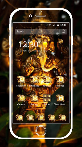 This is a theme of the Buddha on the phone, the background is an elephant head Buddha, golden Buddha entrenched in the central wallpaper, has big ears and long nose,in the brown against the background appears to be solemn, the icon is a golden elephant. God is the Hindu god of wisdom , the Son of the Lord God Shiva and the snow goddess, the war room to build camel brother , in a variety of carvings, he is usually sitting or tilted one side of the knees , The object of God's worship is very broad, not limited to India, in Tibetan Buddhism as he was God of Wealth. The theme of the design concept is very simple, the screen is very cool, there is no complex elements, with the wisdom and wealth of the Buddha, with gold elephants, hope to give users a sense of security and comfortable use experience, beautiful patterns also meet Part of the belief in the Buddha, worship the needs of God's people, bless you safe and happy health and happiness. Pure gold indicates the rich life, the divine god indicates healthy body and luck, the wisdom of God means that learning is excellent, work well, in short, to meet your needs and imagination.