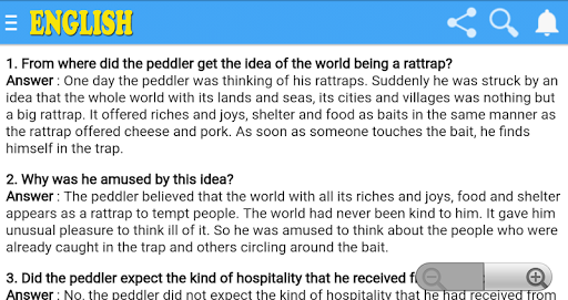 App contains solutions of all chapters of NCERT English for class 12. It contains some sample questions papers and chapter wise question answers also. This app has a very simple user interface.