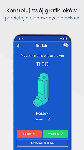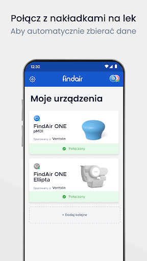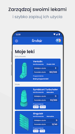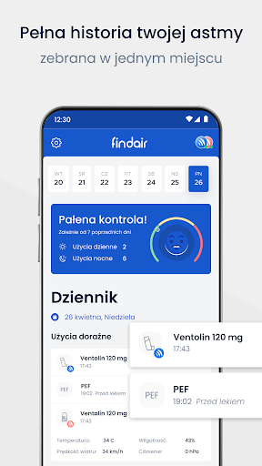 Ponad to aplikacja łączy się z urządzeniem FindAir ONE – inteligentną nakładką na inhalatory. To urządzenie pozwala Ci dokładniej monitorować Twoje postępy w leczeniu, generować raporty zarówno dla siebie, jak i Twojego lekarza oraz otrzymywać w czasie rzeczywistym powiadomienia o zagrożeniach w otoczeniu. Aplikacja FindAir jest jedną najpopularniejszych dzienników astmy świecie i została doceniona przez astmatyków i specjalistów z całej Europy.