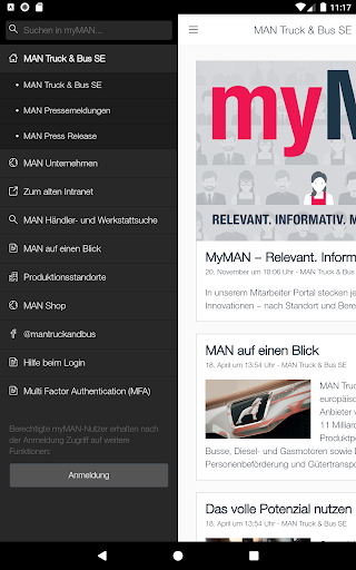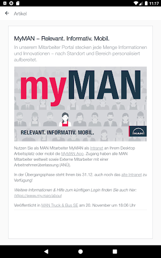 Myman Employee App oferuje najnowsze wiadomości i informacje od Man Truck & Amp;Autobusy.W ten sposób wiadomości korporacyjne mogą być otrzymywane dogodnie i szybko na oficjalnym lub prywatnym smartfonie lub tablecie.