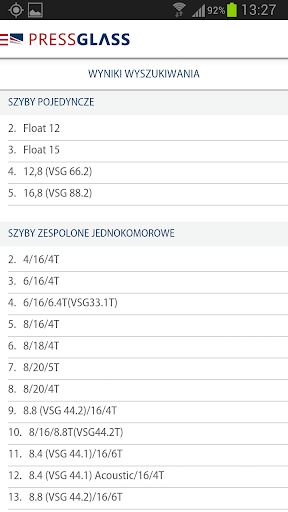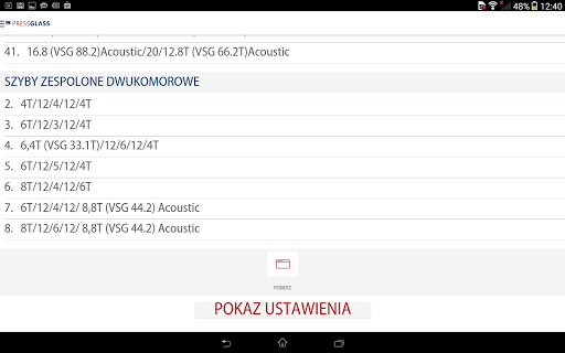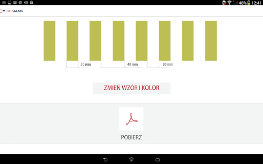 - zapisanie wybranych parametrów i szyb do pliku PDF w celu ich późniejszego użycia
