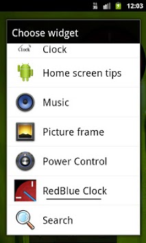 RedBlue Clock! To add this widget press and hold your finger on your homescreen. Select Widget Red Blue Clock.