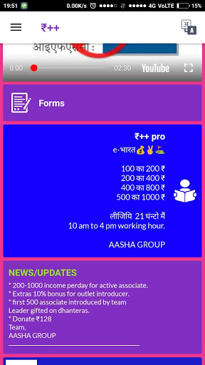 21 hour for details download ₹++ app from play store then register and go to form section then click on "want to donate" chose amount u want to donate and submit. AASHA GROUP send u payment link of our group member with phone number. After 21 hour go to form section and click on "my time gift ". After receive gift amount go to again form section and click on "approve" . After your approval ₹++ pro job finish.
