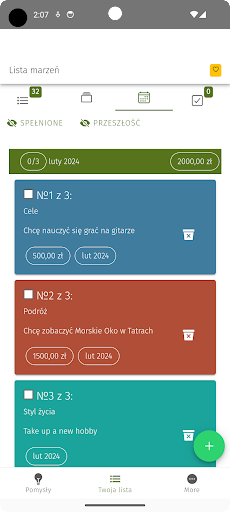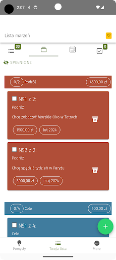 Koszt i data dodana do życzeń. Teraz możesz wyświetlić wszystkie pragnienia według kategorii lub miesiąca z całkowitym kosztem.