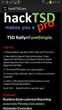 hackTSD pro is much more advanced and equally easier to use application (Rally Computer or Rally Calculator) that reports the ideal time of arrival at any point in a Time-Speed-Distance (TSD format) based Motor-sporting rally.
