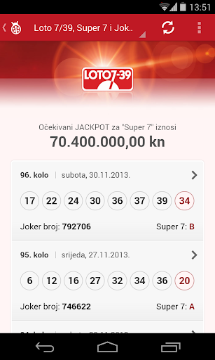 Rezultati su dostupni za lutrijske igre i nude mogućnost uvida u detaljno izvješće odabranog kola koje sadrži informacije o dobitnoj kombinaciji, broju i iznosu dobitaka te iznosu JACKPOT-a za sljedeće kolo.