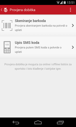 Provjera dobitka je moguća za lutrijske igre (Eurojackpot, Loto 7/39, TV Bingo 15 od 90, Loto 6/45, Keno) i igre klađenja (sportsko i Loto klađenje) na dva načina: