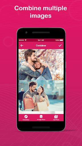 Image Combiner to aplikacja do współpracy, która łączy dwa lub więcej obrazów (łączyć JPG lub Scal JPG) i wyświetla je jako jedno zdjęcie. Aplikacja Image Combiner (PIC Merger App) Aplikacja zatrudnia bogate narzędzie producenta kolażu, które montuje kilka obrazów i przekształca je w jeden obraz.