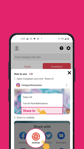 1.Easy to use. All you have to do is copy and paste or share to Instamate. The download will automatically start.