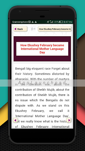 Międzynarodowy Język Język Dzień 21 lutego 1952 Historia i Shaheed Dibas w tych aplikacjach.International Mother Language Day App została stworzona z historią ruchu językowego.Dzień bolesnego i chwalebnego wspomnienia ruchu języka Ludowego Bengalskiego, 21 lutego, był również dobrze znany jako dzień Shaheed i Międzynarodowy Dzień Języka Międzynarodowego.Oczywiście nasze 5 gwiazdek będzie Cię zainspiruje.Dziękuję za bycie z nami.