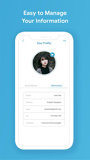 - Twoje informacje można łatwo edytować, aby zintegrować z innymi funkcjami aplikacji, takimi jak udostępnianie działalności karty i udostępnianie sieci społecznościowych.