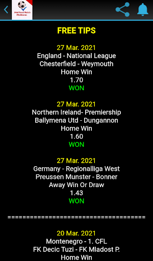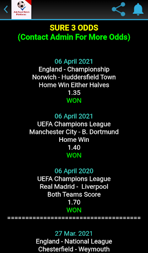 Platforma meczu Joh Fixed to dedykowana aplikacja do porad w piłce nożnej z wysoką stawką wygraną.Nasza aplikacja jest jedną z najbardziej profesjonalnych aplikacji do piłki nożnej dla fanów piłki nożnej, aby śledzić i uzyskać bezpłatne wskazówki piłki nożnej.Nasz profesjonalny zespół ma dobre tło i duże doświadczenie.Wszystkie nasze wskazówki piłkarskie są wysoce analizowane i przetestowane, aby zapewnić najlepsze możliwe przeżycia.Jeśli masz jakieś pytania lub komentarz, skontaktuj się z nami za pośrednictwem Gabrieljoh414@gmail.com.