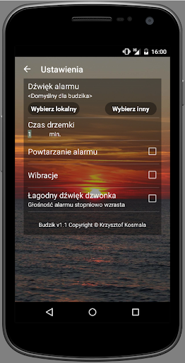 - Jeżeli używasz menedżera autouruchamiania niezbędne jest zezwolenie dla Budzika.