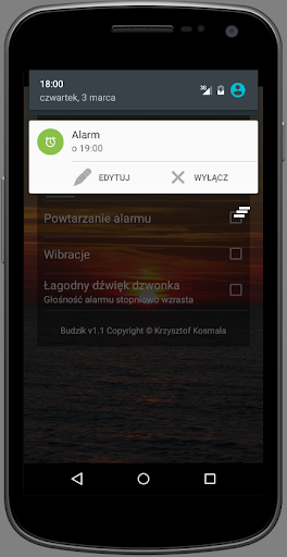 - zarządzanie alarmem i drzemką także z poziomu powiadomienia,