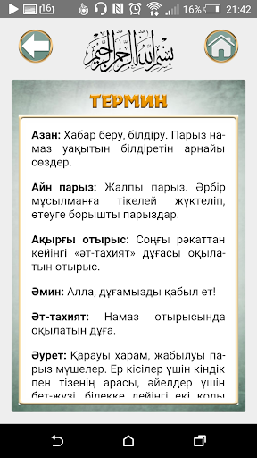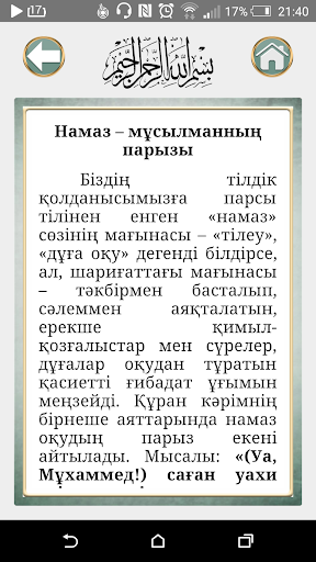 Бұл қосымша Ислам ғибадатының бастауы, діннің дінгегі, иманның нұры, мүміндердің миғражы болып саналатын ерекше құлшылық – «Намаз» жайлы толық әрі жан-жақты мағлұмат беріп, намаздың оқылуын үйретеді.
