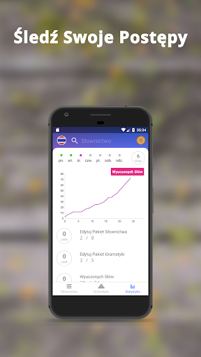 - W każdej chwili możesz śledzić swoje aktualne słownictwo, biegłość i cenione słownictwo w swoich statystykach.