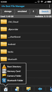 Lite Best File Manager is the best File Explorer and File Manager on Android. It allows you to browse your Phone memory & SD card, create folders, text files and directories, as well as to Rename, copy, move, and delete files. You don´t need to search SD card or phone memory for camera folder or any bluetooth folder if you have this app - there is a link from which you can access both folders directly.