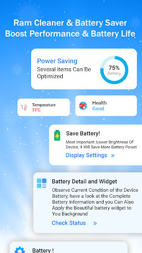 - Storage cleaner helps analyze, cleanup and safely remove the junk files that take up your memory and storage space. - Smartly detect the power consumption of mobile applications, optimize battery usage, and delay battery life.