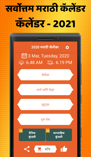 Uzyskaj nowy Marathi Calendar 2021 to darmowa aplikacja Kalendarza Almanac dla Maharasttrians. Znany jako Marathi Panchang z मराठी पंचांग 2021 / Hinduski kalendarz 2021 Nowe