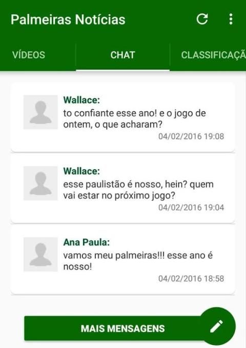 Página de bate-papo onde é possível conversar com outros torcedores e saber mais sobre o time e o que a torcida está pensando.