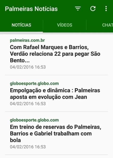 Com o aplicativo Palmeiras Notícias você irá visualizar notícias de diversas fontes, acessar o site da notícia direto no aplicativo ou carregar apenas o texto (o carregamento de texto é muito leve e economiza sua internet).