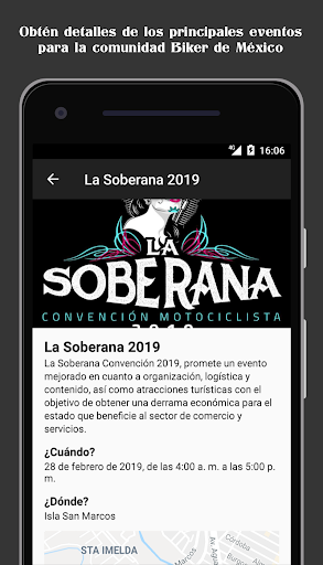 La aplicación ofrece: precios preferenciales y descuentos en un sinfín de establecimientos y servicios. También tendrás acceso a eventos, noticias e información sobre el mundo del motociclismo. No puedes perderte la oportunidad de conocer y convivir con otros bikers viviendo una verdadera hermandad con honor y respeto.