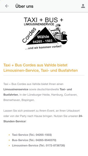 Taxi-Service (Tel.: 04265-1503) Bus-Service (Tel.: 04265-9540370) Limousinen-Service (Tel.: 0172-8736726) Sie erreichen uns unter: Telefon: 04265-1503