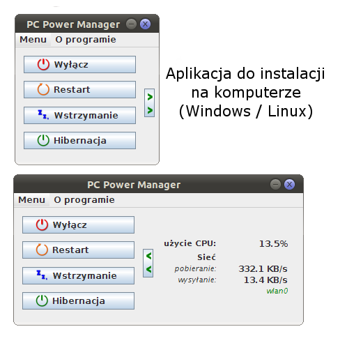 1. Wymagana jest instalacja współpracującej aplikacji na komputerach, którymi chce się sterować. Program można pobrać tutaj (najnowsza wersja: PC Power Manager v.1.7.):