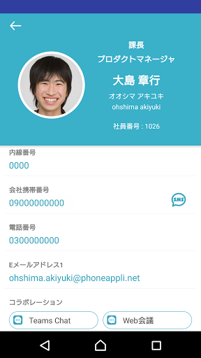 ID dzwoniącego: Użytkownicy korporacyjnych Aplikacji Telefonu Użytkownicy tej aplikacji, aby zarejestrować dane kontaktowe dla smartfona, ale nawet podczas przychodzącego przybycia telefonicznego na telefon Appli Server możesz wysłać i wyszukać numer dzwoniącego i wyświetlić informacje o zarejestrowanych dzwoniących ( Nazwa Przedsiębiorstwa lub Nazwa Departamentu, Nazwa). Pozwala to na bezpieczne reagowanie.