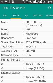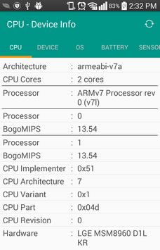 - SoC (System On Chip) name, architecture, clock speed for each core ;