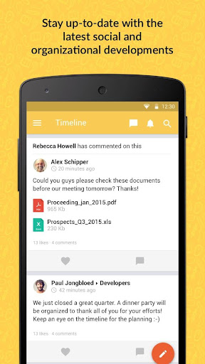 Share new knowledge, ideas and internal achievements quickly and easily with the rest of your team, department or organization. Enrich messages with pictures, videos and emoticons. Simply keep track of new posts from your colleagues, organization and partners.