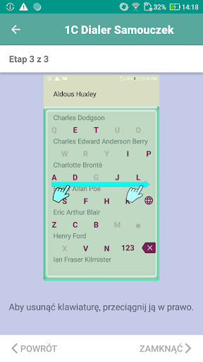 „Przezroczysta” klawiatura ekranowa z dużymi klawiszami nie zakrywa listy kontaktów, a do tego pozwala wyeliminować błędy w nazwach. Możesz spersonalizować motywy, metodę wyszukiwania efekty dotyku oraz inne ustawienia.