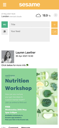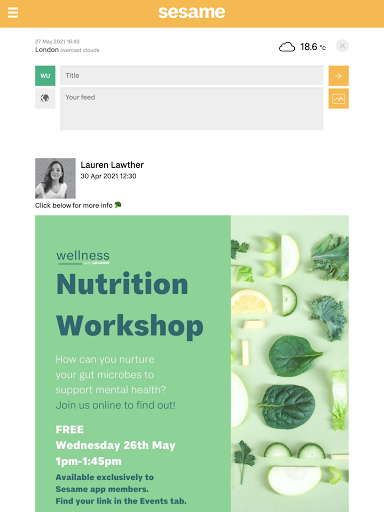 Sezam One Newman Street utrzymuje kontakt ze swoimi kolegami i społecznością roboczą.Dostęp do funkcji społecznych za pośrednictwem przewijania "Ściana społecznościowa" utrzymuje Cię na bieżąco z kolegami, podczas gdy Wiadomości w aplikacji jest dostępne w sekcji "Czat".Mieszkaniowe mogą spojrzeć na lokalne wydarzenia w czasie rzeczywistym, udogodnienia i oferty, aby zobaczyć, co dzieje się poza biurem.