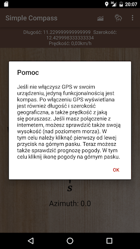 Możliwości aplikacji zależą od wydajności Twojego telefonu lub tabletu. Musisz mieć pewność, że Twoje urządzenie nie znajduje się w zewnętrznym polu magnetycznym. Może to powiem spowodować niedokładny pomiar azymutu.