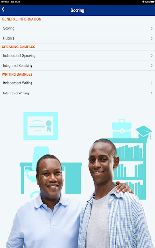 • In-app purchases of Reading, Listening, Speaking, and Writing authentic practice tests