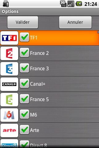 - liste des chaînes accessible par le bouton de recherche