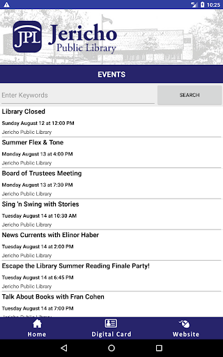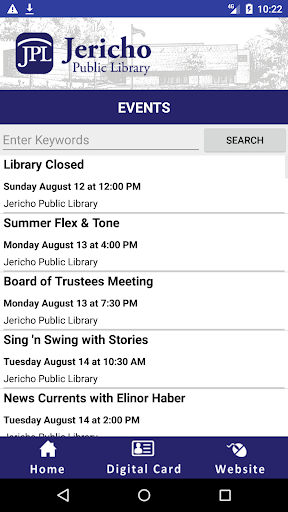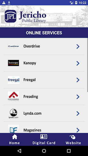 Patroni biblioteki publicznej Jericho w Jericho w stanie Nowy Jork mogą teraz korzystać z tej aplikacji, aby uzyskać dostęp do wielu usług świadczonych przez bibliotekę na ich urządzeniach.