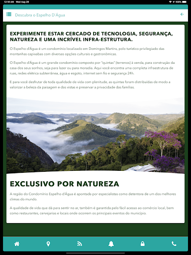 Aplicativo do Espelho d’Água, condomínio localizado em Domingos Martins, polo turístico privilegiado das montanhas capixabas com diversas opções culturais e gastronômicas.