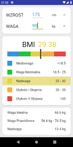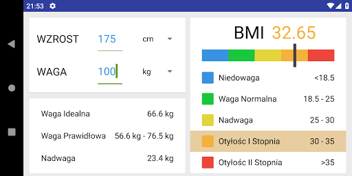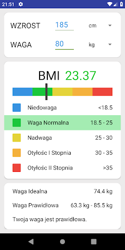 Intuicyjna aplikacja, pozwalająca obliczyć BMI (wskaźnika masy ciała).