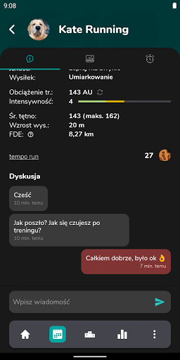 Możesz zwyczajnie polubić trening zawodnika dając mu "ciastko". Przecież wiadomo, że wiele osób biega, aby móc jeść więcej “ciastków”. Motywuj zawodników za pośrednictwem prostego czata, dołączonego do każdego zaplanowanego treningu.