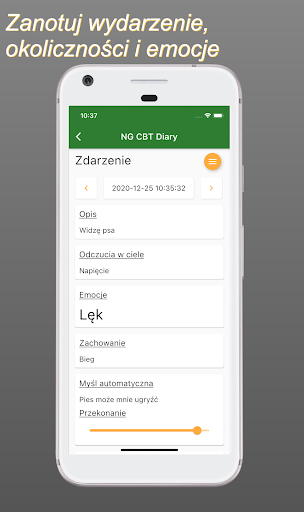 Jeśli jesteś w terapii CBT ta aplikacja na pewno jest dla Ciebie. Dziennik CBT pomaga w terapii każdego dnia, z dnia na dzień. Dzięki tej aplikacji możesz zapisywać wydarzenia, myśli, emocje i zachowania, analizować je na wykresach i wysyłać raporty do terapeuty. Dziennik CBT jest w Twoim smartfonie, masz zawsze notatnik ze sobą. Nigdy nie zapomnisz go zabrać. Możesz robić notatki w dowolnym miejscu, w dowolnym czasie.