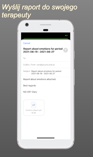 - generować raporty na temat zdarzeń, myśli i emocji i wysyłać je za pośrednictwem poczty e-mail, na przykład do terapeuty