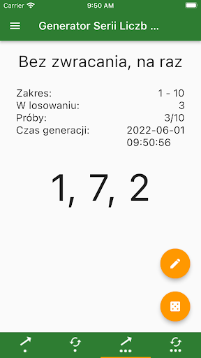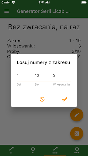 Dzięki aplikacji możesz losować liczbę po liczbie lub klika liczb na raz. Aplikacja nie gubi losowania w przypadku jej zatrzymania albo nawet restartu telefonu.