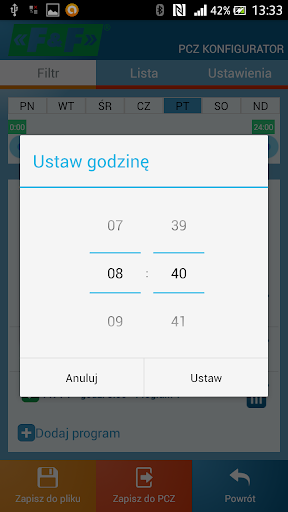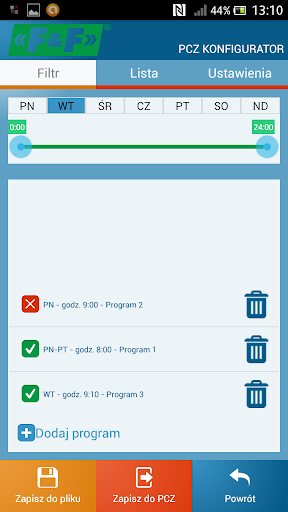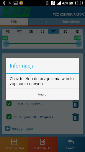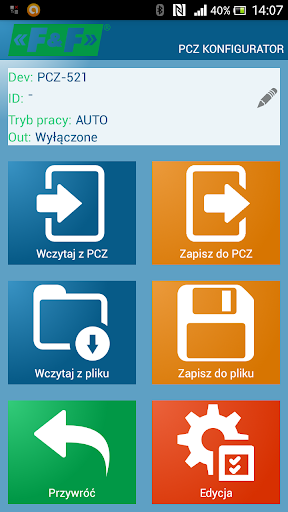 Program F&F PCZ Konfigurator przeznaczony jest do zdalnej (NFC) konfiguracji sterowników czasowych PCZ-521.3 (http://www.fif.com.pl/produkt/610/631), PCZ-522.3 (http://www.fif.com.pl/produkt/610/632) i PCZ-529.3 (http://www.fif.com.pl/produkt/610/634) oraz zegarów astronomicznych PCZ-524.3 (http://www.fif.com.pl/produkt/24/309), PCZ-525.3 (http://www.fif.com.pl/produkt/24/314), PCZ526.3 (http://www.fif.com.pl/produkt/24/315).