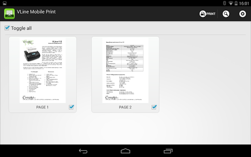 VLine Mobile Print obsługuje wydruk dokumentów z aplikacji które generują pliki w formacie PDF.